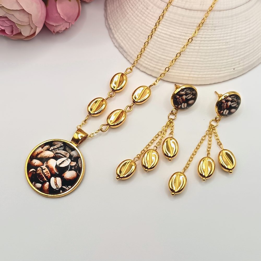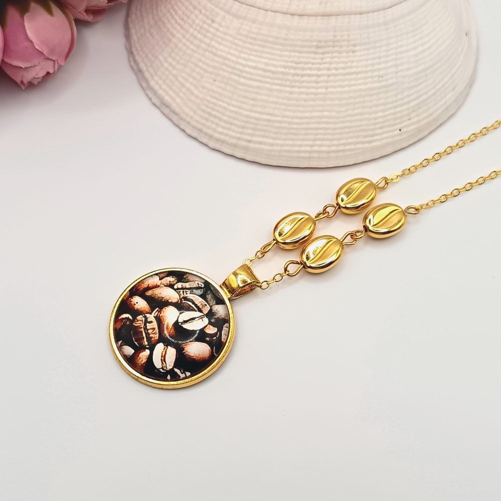Arany nyaklánc – kávészemes lencsével, arany kávészemgyöngyökkel