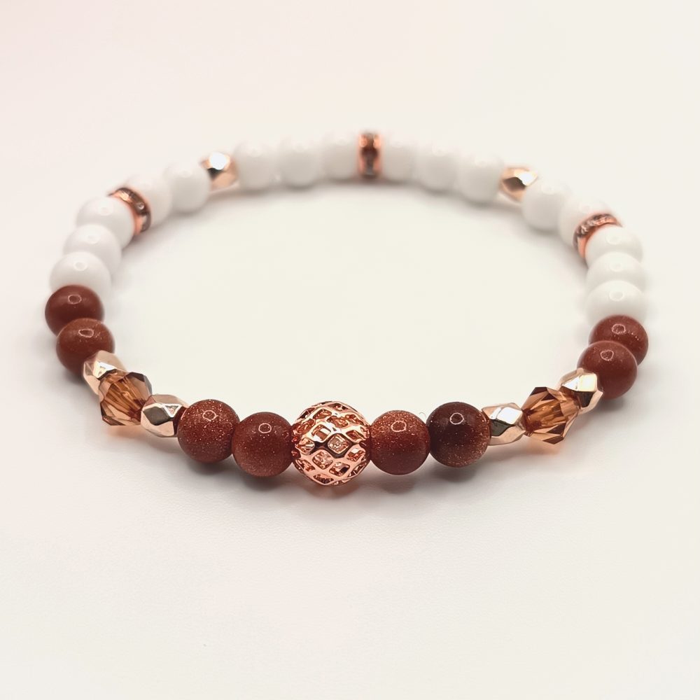 Kezdőlap Ásványkarkötők Aranybarna homokkő – fehér achát karkötő rózsaarany részletekkel