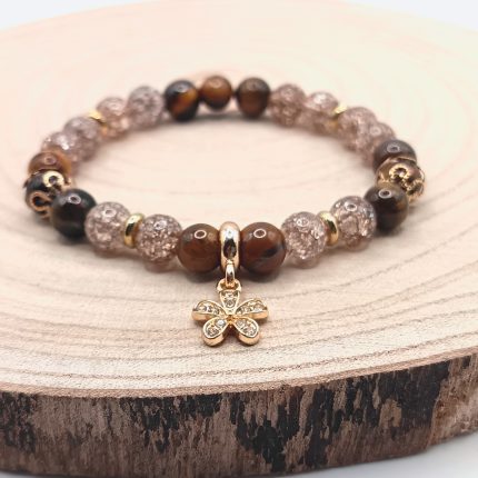 Tigrisszem ásványgyöngy – csillogó kávébarna üveggyöngy karkötő arany kiegészítőkkel