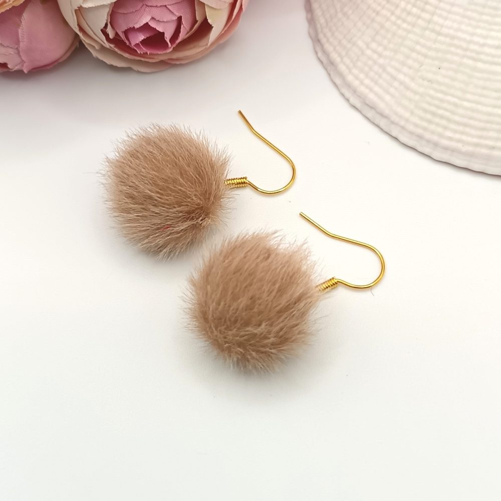 Barna Tündérfény – Szőrme labda fülbevaló arany kampóval