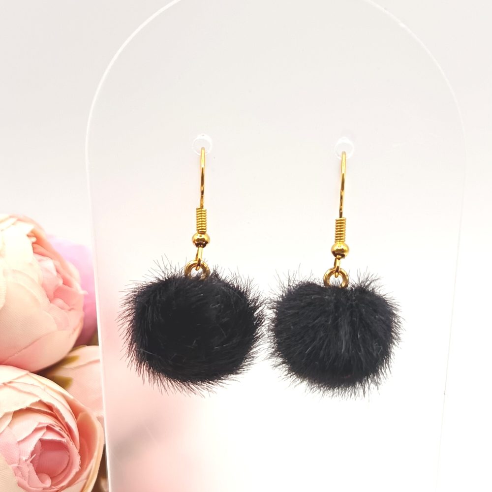 Kezdőlap Fülbevalók Akasztós fülbevaló Éjszakai titok – Szőrme labda fülbevaló arany kampóval