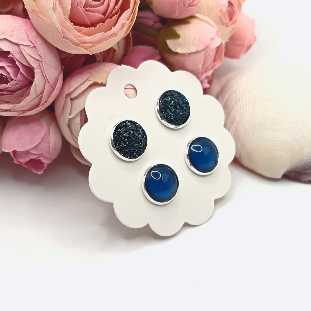 Kezdőlap Fülbevalók Bedugós fülbevaló Páros bedugós fülbevalók Ezüst bedugós fülbevaló – csillogó sötétkék / tintakék lencsékkel