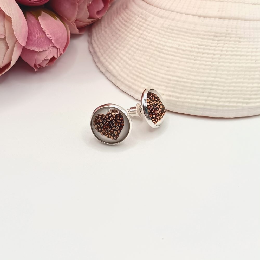 Ezüst bedugós fülbevaló – kávészív lencsékkel