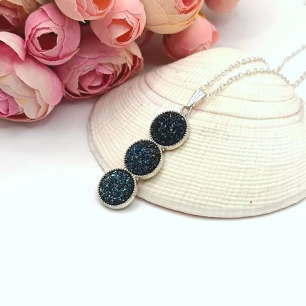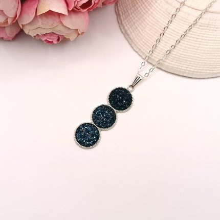 Ezüst nyaklánc – csillogó sötétkék lencsével
