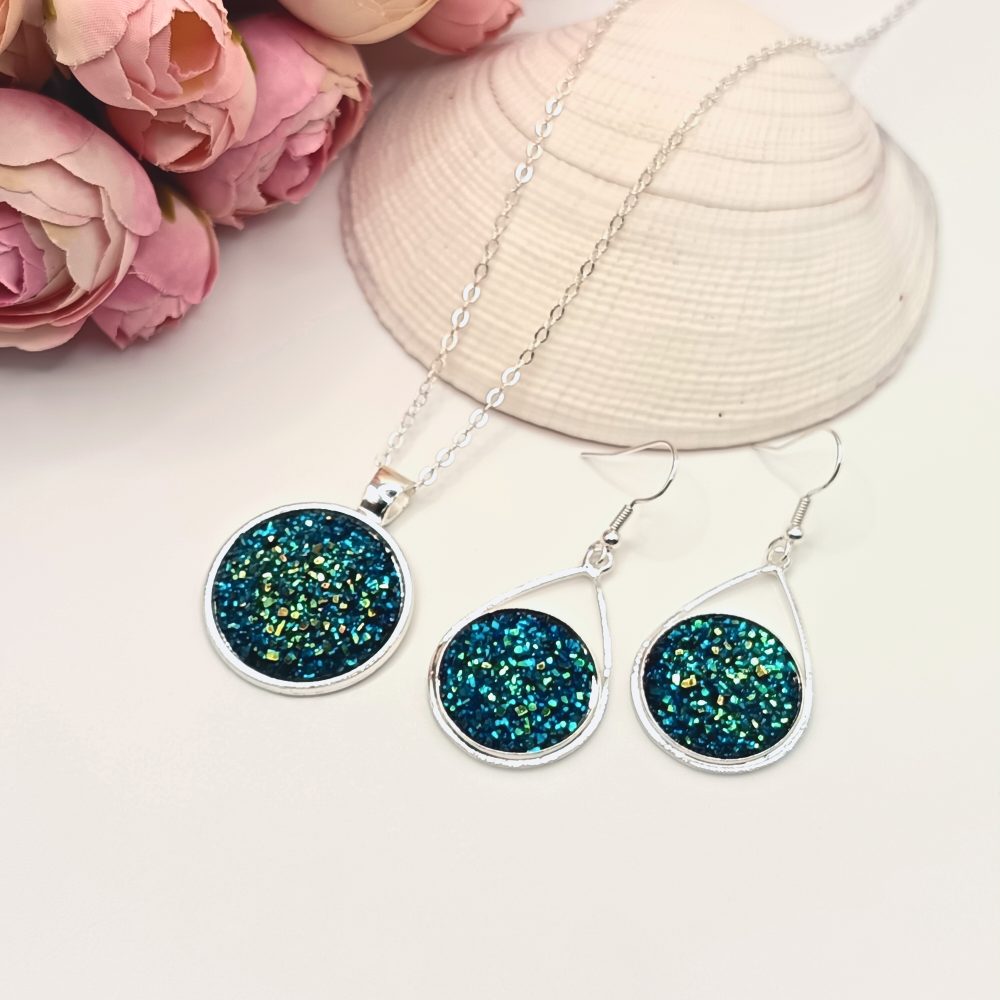 Ezüst ékszerszett – csillogó kék lencsével