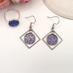 Kezdőlap Szettek Ezüst ékszerszett – gyűrű és fülbevaló csillogó világos lila lencsével