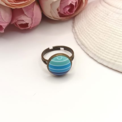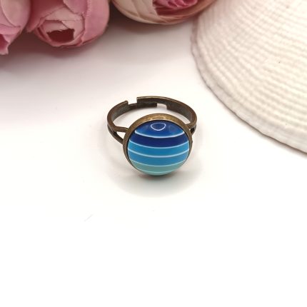Antik bronz gyűrű – kék / fehér csíkos lencsével