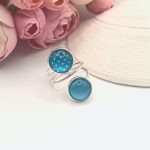 Kezdőlap Gyűrűk Ezüst gyűrű – kék / fehér pöttyös dupla lencsével
