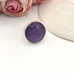 Ezüst gyűrű – csillogó lila textilbőrrel