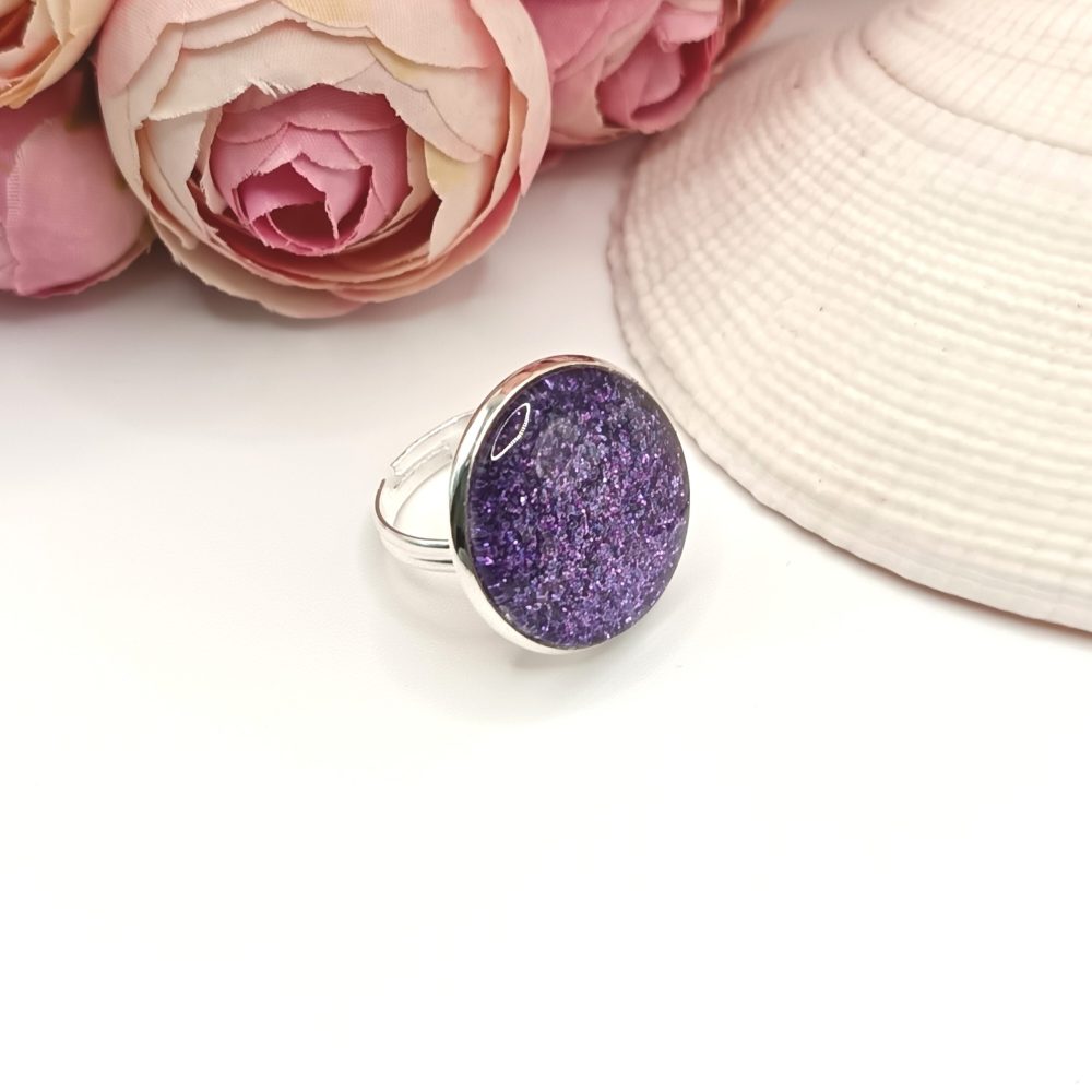 Kezdőlap Gyűrűk Ezüst gyűrű – csillogó lila textilbőrrel