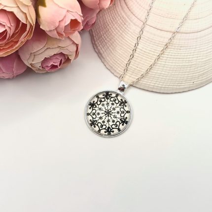 Ezüst nyaklánc – fehér, fekete csipkemintás lencsével