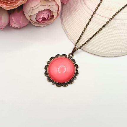 Antik bronz nyaklánc - világos piros lencsével 3800 Ft