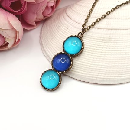 Antik bronz nyaklánc – világoskék / sötétkék üveg lencsével