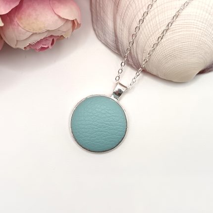 Ezüst nyaklánc – jégkék textilbőrrel
