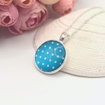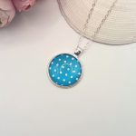 Ezüst nyaklánc – kék / fehér pöttyös lencsével