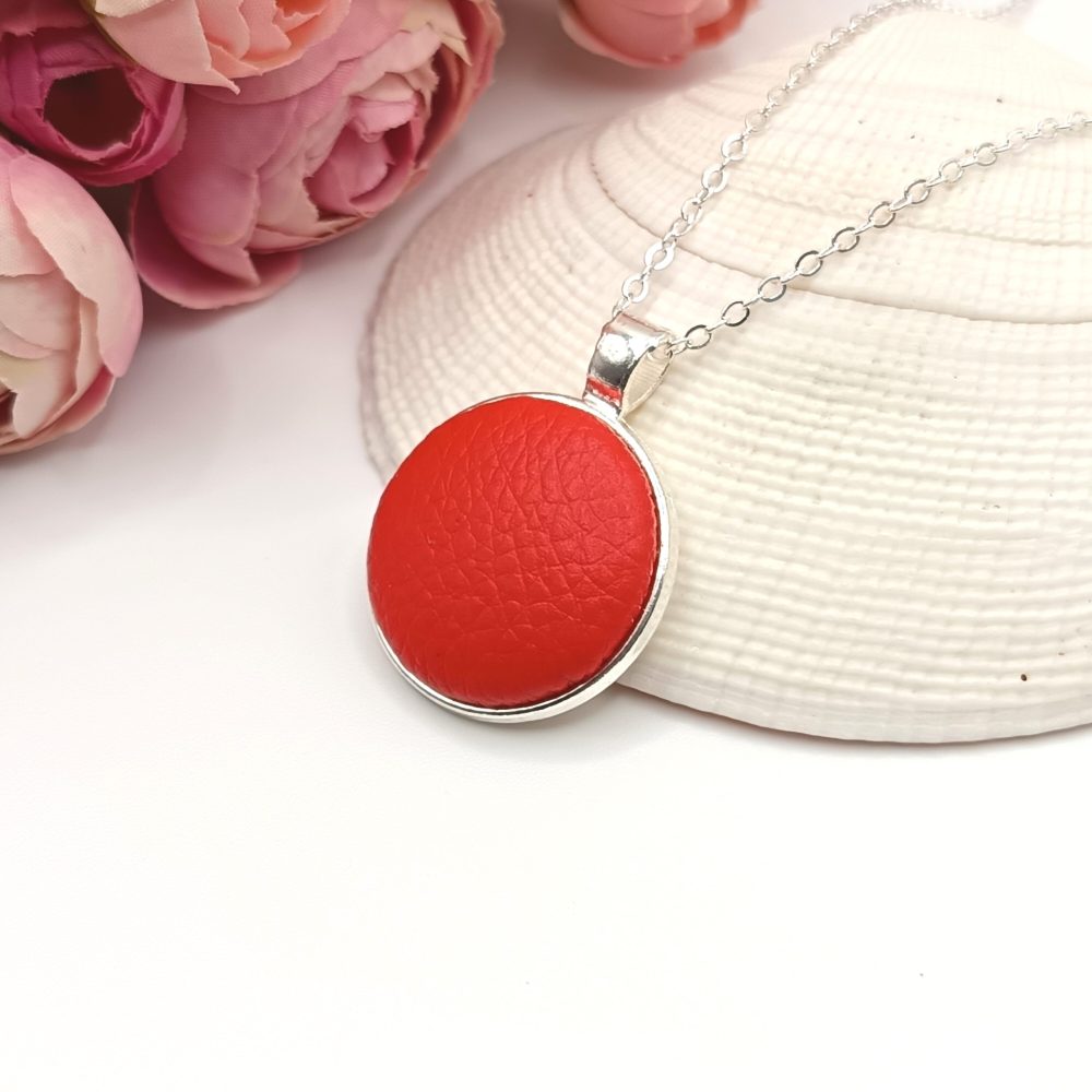 Ezüst nyaklánc – piros textilbőrrel