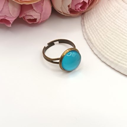 Antik bronz bedugós fülbevaló – csillogó középkék lencsével