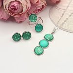 Ezüst bedugós fülbevaló – zöld, fehér pöttyös lencsével