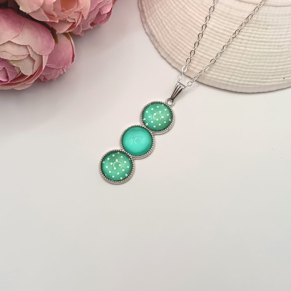 Kezdőlap Nyakláncok Ezüst nyaklánc – zöld, fehér pöttyös lencsével