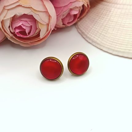 Antik bronz bedugós fülbevaló - piros macskaszem lencsével 1100 Ft