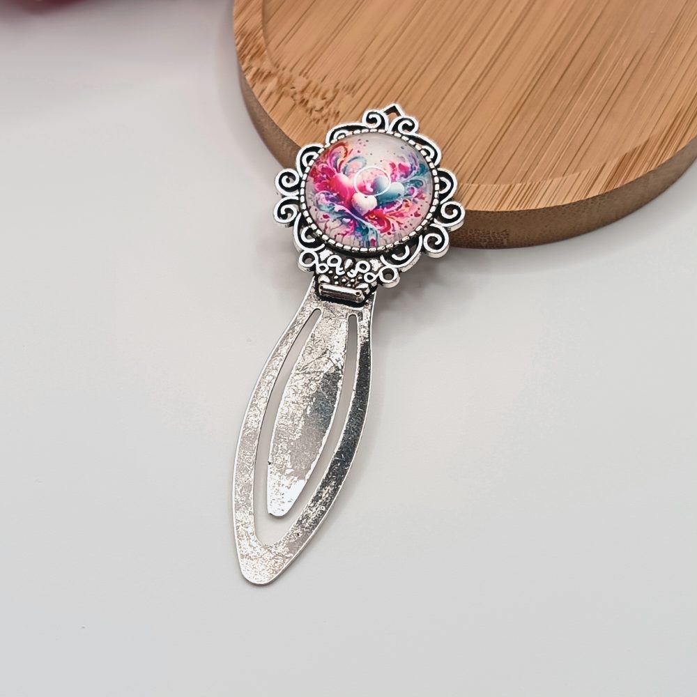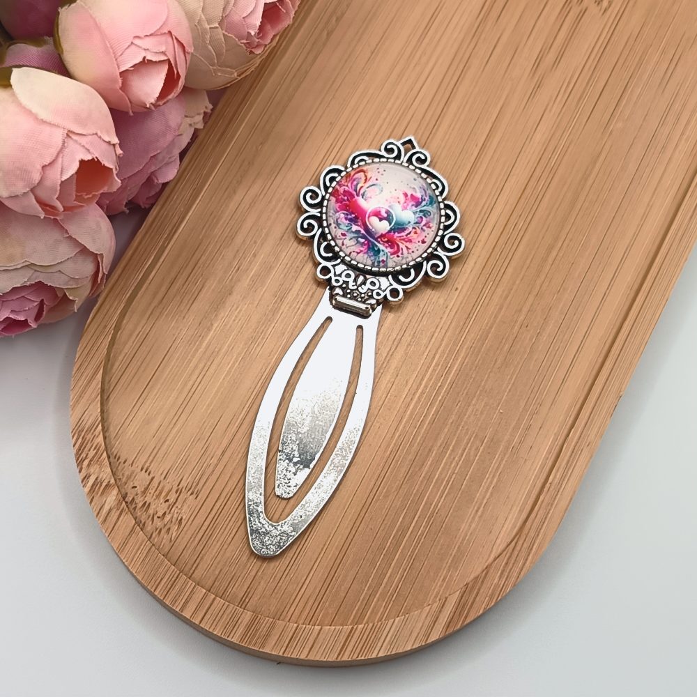Ezüst könyvjelző – színes szív mintás lencsével
