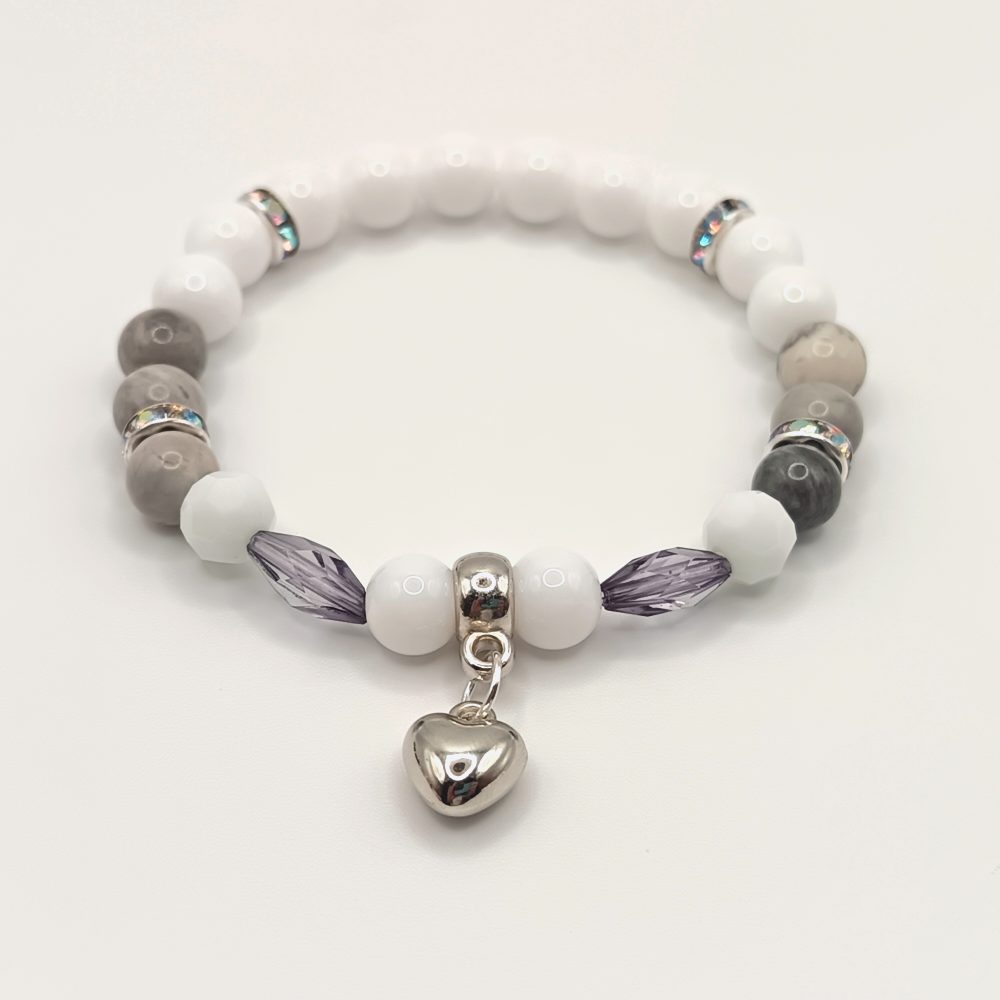 Fehér achát – jáspis karkötő ezüst részletekkel