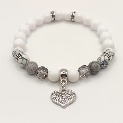 Fehér achát - howlit - jáspis karkötő ezüst részletekkel 3490 Ft
