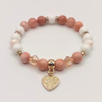 Őszibarack jáde - fehér achát karkötő arany részletekkel 3890 Ft