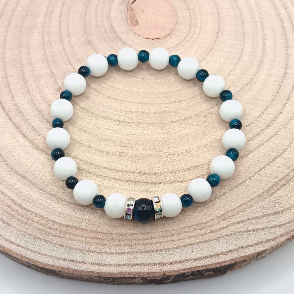 Együtt viselve a kék tigrisszem és a fehér achát erőt és békét hoznak a mindennapokba: míg a tigrisszem összeszedetté és magabiztossá tesz, az achát segít megőrizni a lelki harmóniát. Tökéletes választás azoknak, akik egyensúlyt keresnek erő és nyugalom között – stílusosan és tudatosan.