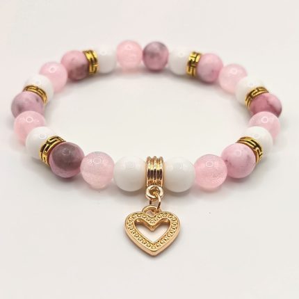 Fehér achát - rodonit karkötő arany részletekkel 3890 Ft
