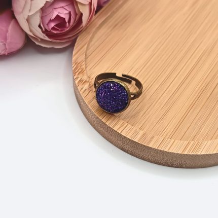 Antik bronz gyűrű – csillogó lila lencsével 1700 Ft