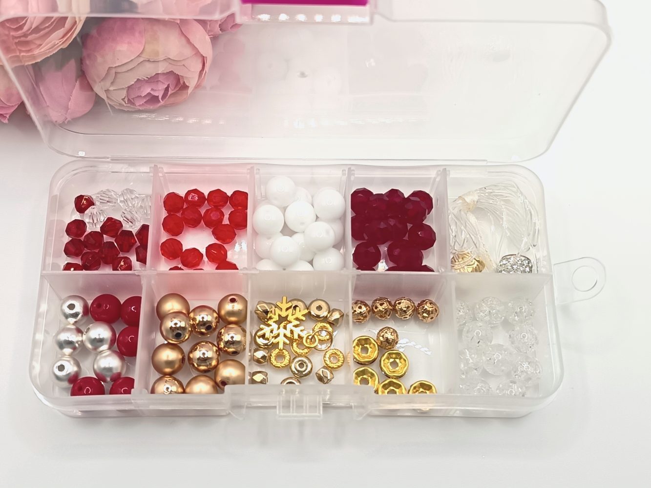 Ez a DIY ékszerkészítő doboz ideális választás, ha a piros, fehér és arany árnyalatok szenvedélyes, mégis elegáns világát szeretnéd megjeleníteni az alkotásaidban.