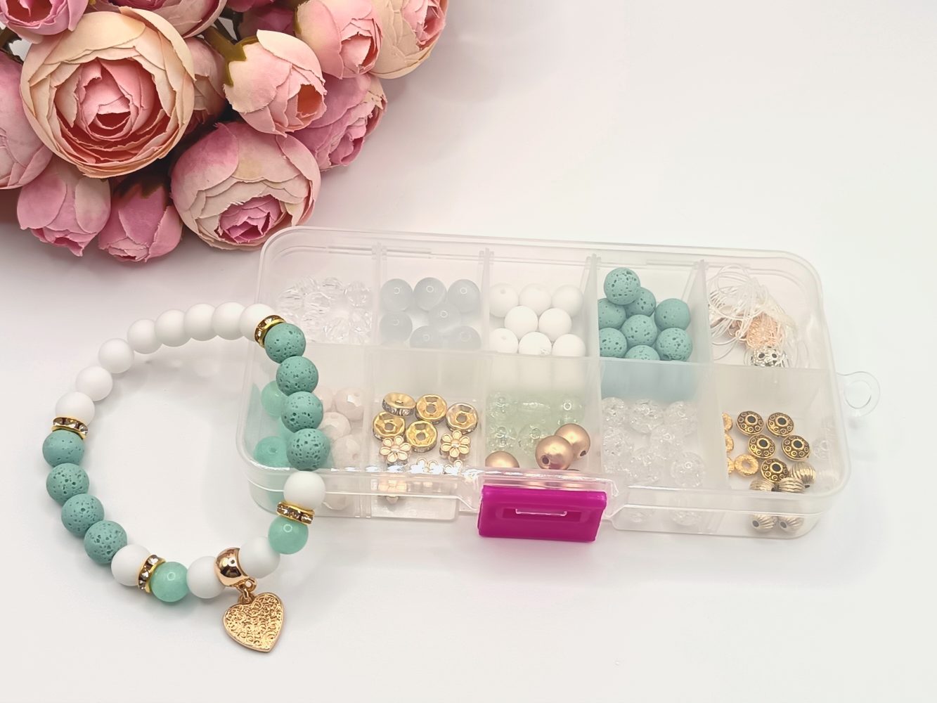 A fotón látható karkötő csak egy ötlet (nem része a rendelésnek), amit akár te is elkészíthetsz ebből a dobozból — de a lehetőségek határtalanok!