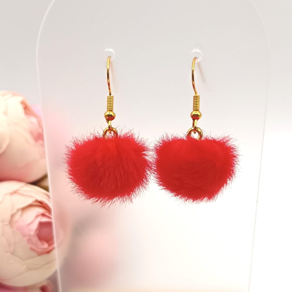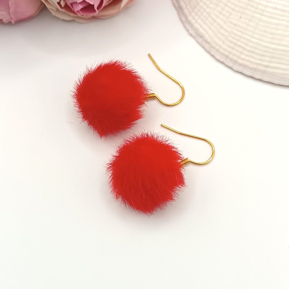 Pirkadat Lángja – Szőrme labda fülbevaló arany kampóval