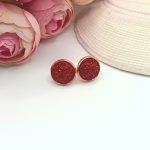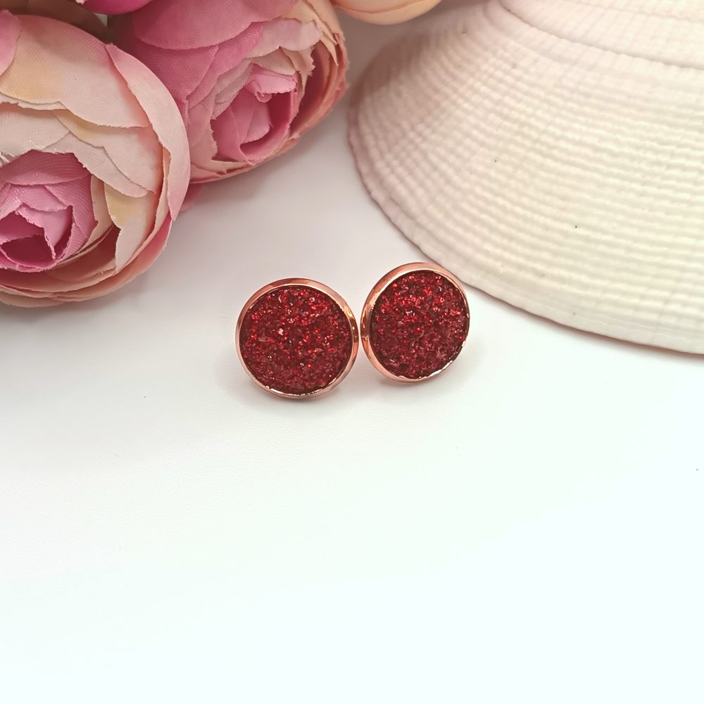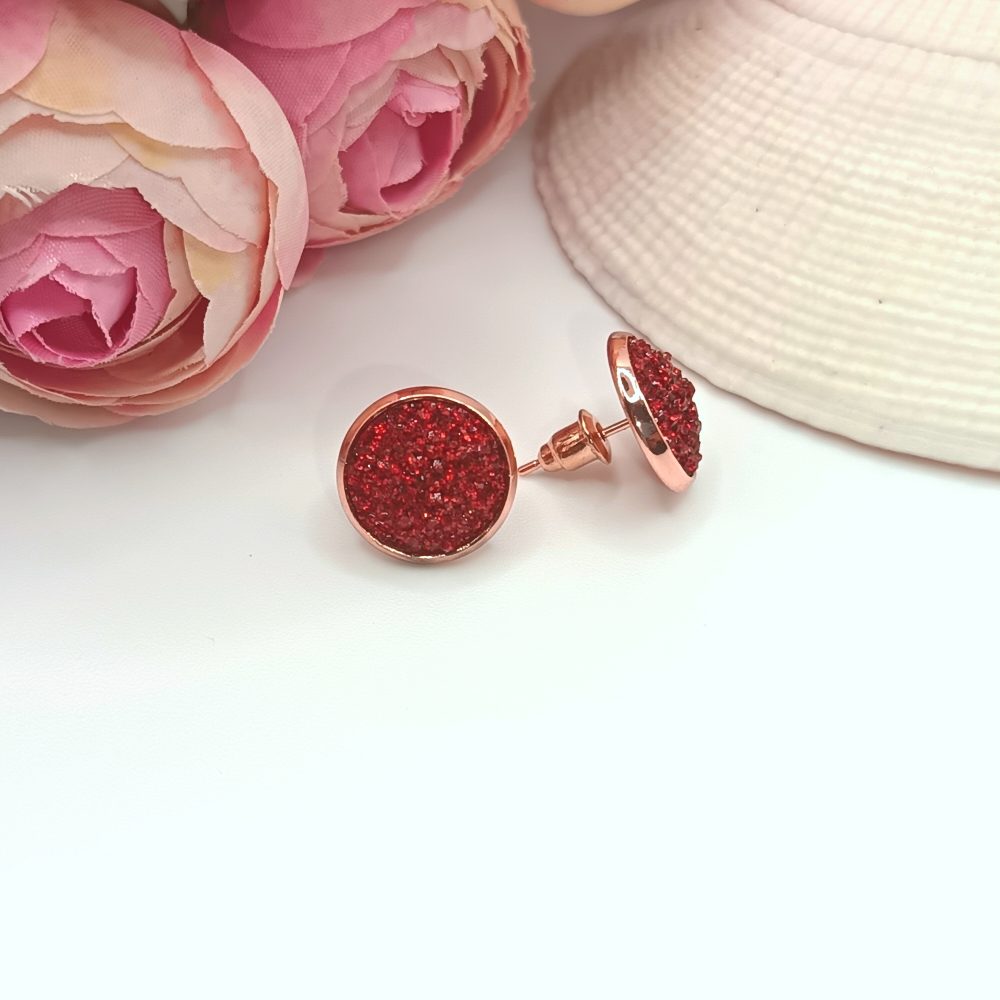 Rózsaarany bedugós fülbevaló – csillogó piros lencsével