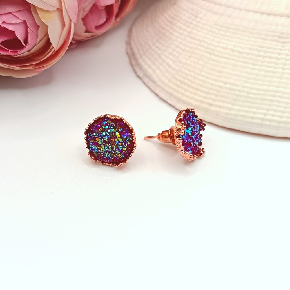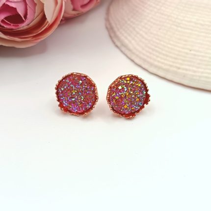 Rózsaarany bedugós fülbevaló - csillogó rózsaszín lencsével 1100 Ft