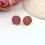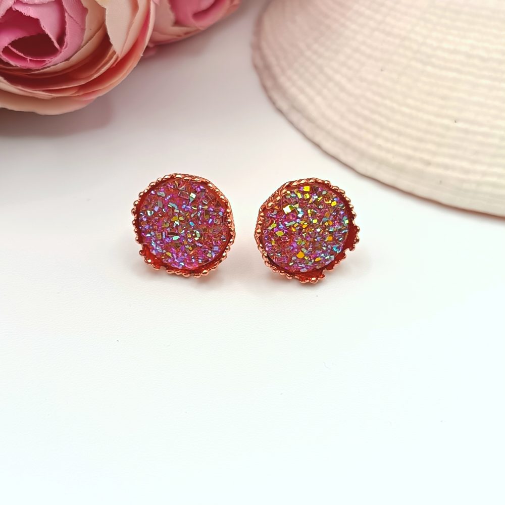 Rózsaarany bedugós fülbevaló – csillogó rózsaszín lencsével