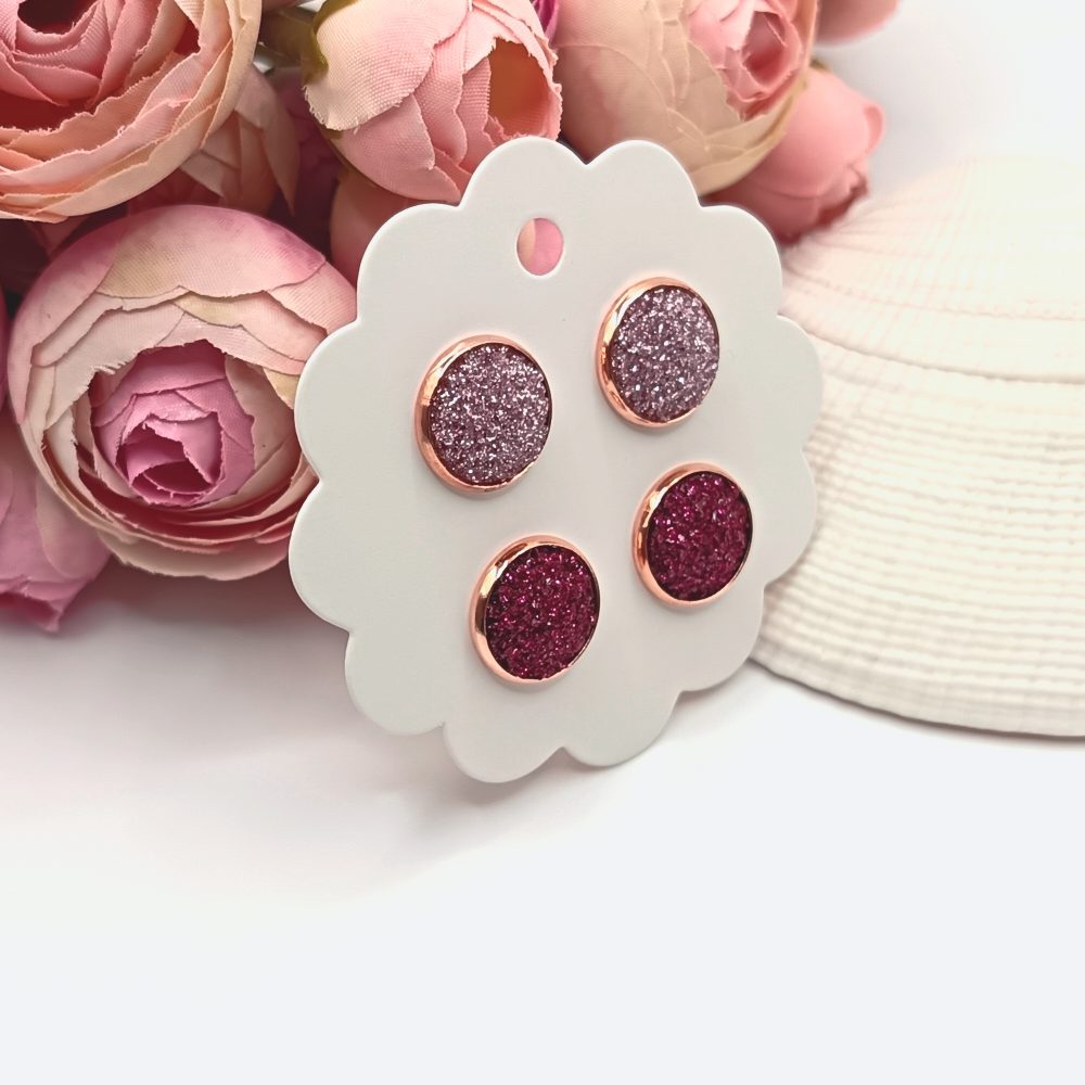 Kezdőlap Fülbevalók Bedugós fülbevaló Páros bedugós fülbevalók Rózsaarany bedugós fülbevaló – csillogó rózsaszín / pink lencsékkel