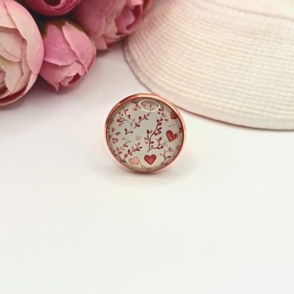 Rózsaarany gyűrű – piros szívecskés lencsével