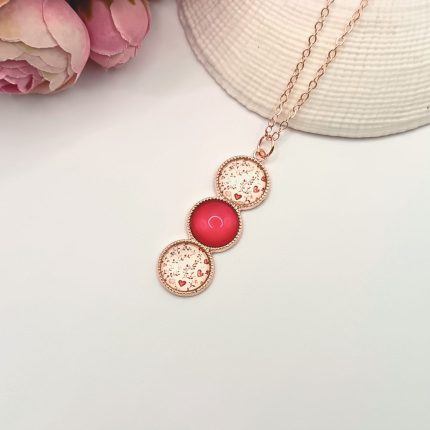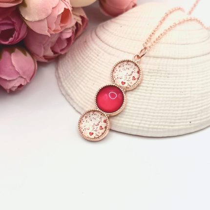 Rózsaarany nyaklánc – piros, szívecskés lencsével