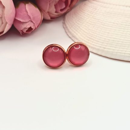 Rózsaarany bedugós fülbevaló - halványpiros lencsével 1100 Ft