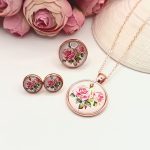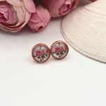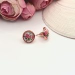 Rózsaarany bedugós fülbevaló – rózsa mintás lencsével