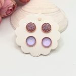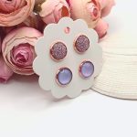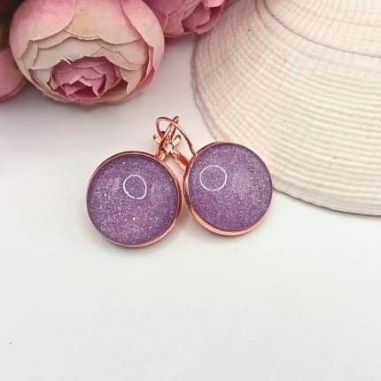 Rózsaarany bedugós fülbevaló – rózsaszín / levendulalila lencsékkel