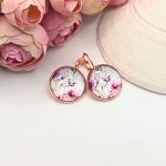 Kezdőlap Fülbevalók Franciakapcsos fülbevaló Rózsaarany franciakapcsos fülbevaló – lila / rózsaszín virágokos lencsével