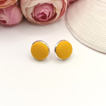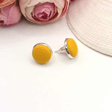 Ezüst bedugós fülbevaló – sárga textilbőrrel