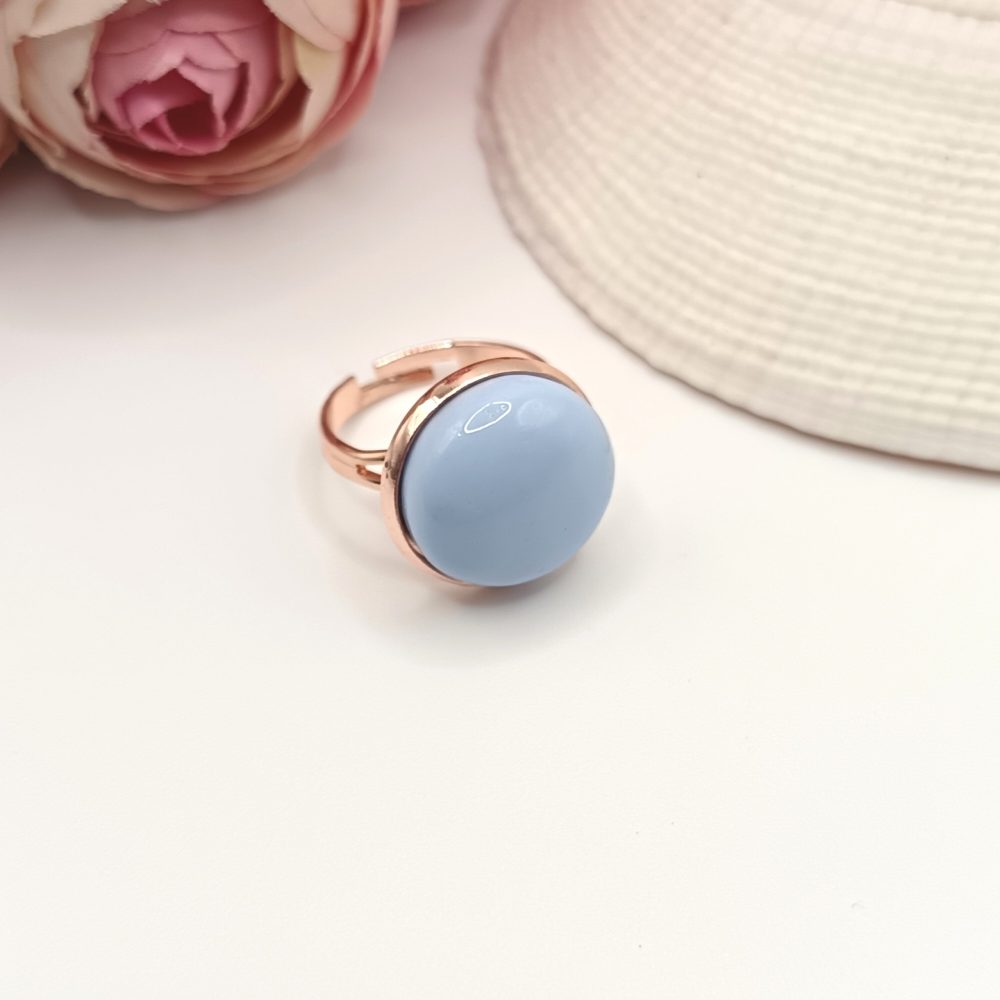 Rózsaarany gyűrű – macaron kék lencsével