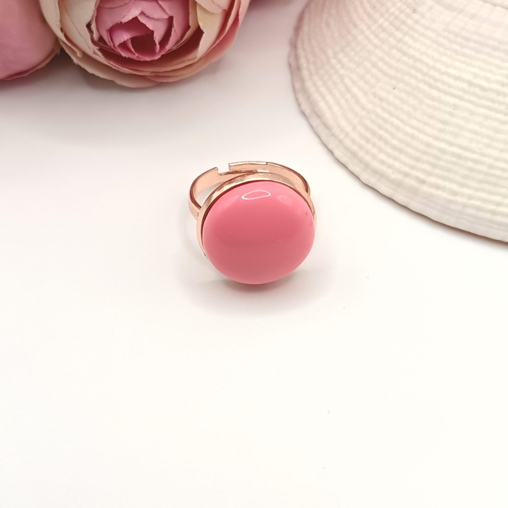 Rózsaarany gyűrű – macaron sötét rózsaszín lencsével