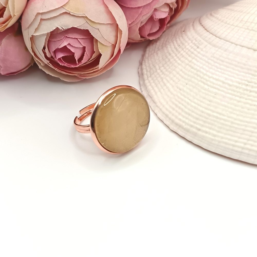 Rózsaarany gyűrű – macaron citromsárga lencsével