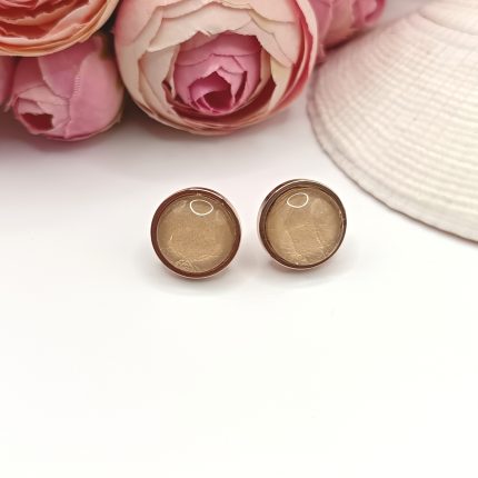 Rózsaarany bedugós fülbevaló – pezsgő színű textilbőrrel