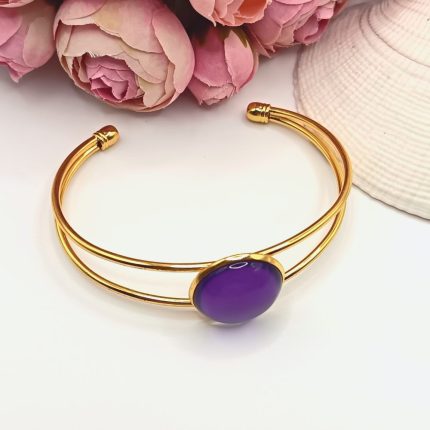 Rózsaarany karkötő – lila csillogó textilbőrrel